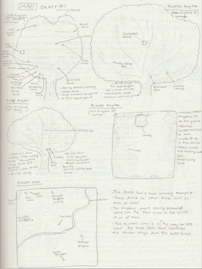 I haven’t been doing a god job of explaining or drawing out what the kingdoms look like even though I can visualize them so clearly in my head, so I tried drawing out basic maps for them. My scanner made the edge too blurry to read, so here’s a bit of a close-up on that part.