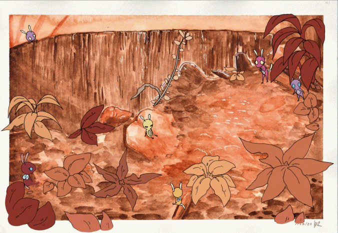 I made this as part of a series of four paintings for class. This one represents the season of Autumn and features my original species the Seiki. This was done in watercolors and computer paper, and edited together digitally.