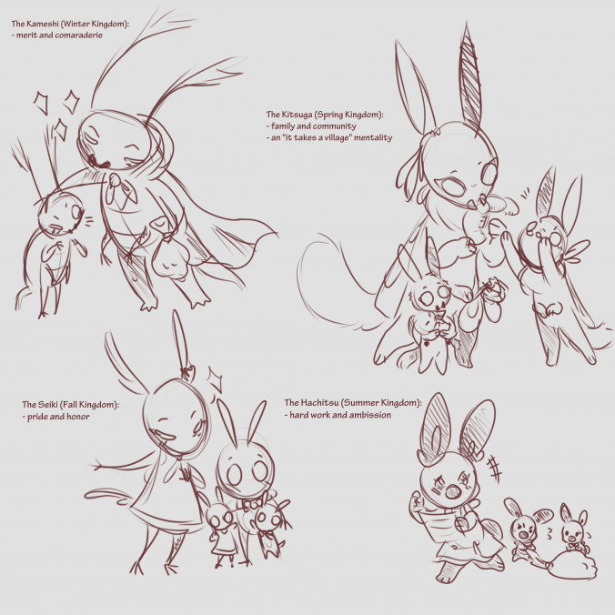 Early concept art of the importance of flowers in the Seiki kingdom.