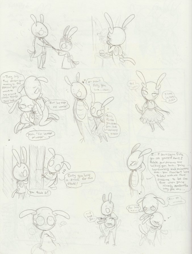 Sketches of Dolly’s kids finding their pet aphid, Buggie.