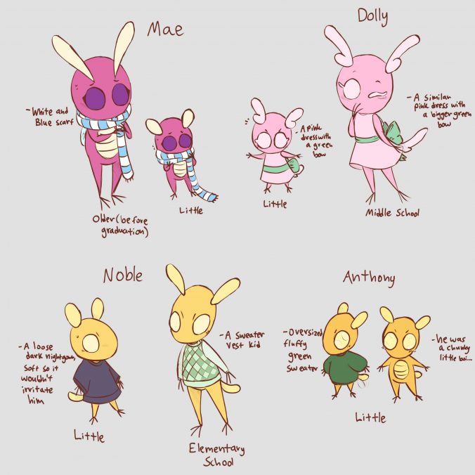 I finally made an actual reference sheet for myself for the designs of character when they’re younger, before I was just going off of memory.