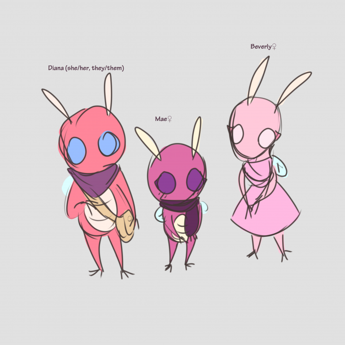 Early concept art of Mae’s parents; Beverly and Diana.