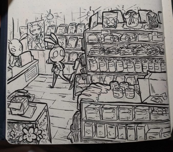 I’m challenging myself to start drawing backgrounds well, and visualizing the imaginary spaces my stories take place in. Here’s my first attempt! Joel in a messy shop. I’m also gonna do a bunch of practice showing off what the four kingdoms really look like, since I haven’t really drawn them before.