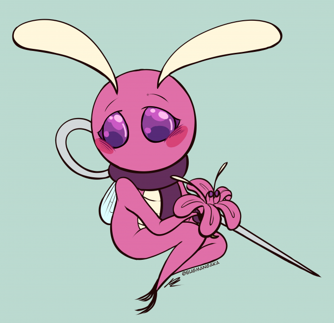 The story of Asha’s lineage told in a piece! It’s meant to work in somewhat of a circle. It starts in the top left with Asha and Ruben, then moves to Asha and Thatcher, then the line of her youngest daughters. Each of the youngest daughters are holding the letter Asha passed down to them, but you can see by their facial expressions that they’re unhappy about it, showing that Asha’s presence in her family is waning. It moves to Tate and Lisa, Mae’s biological family, and finally at the bottom right Mae is being adopted out to Beverly and Diana. In the foreground is Mae as she is now! Growing up and on her journey. Asha, as a ghost, is watching her, which connects it back to the beginning. The flowers in the background are delphinium, the flower Seiki use to decorate on The Holiday.