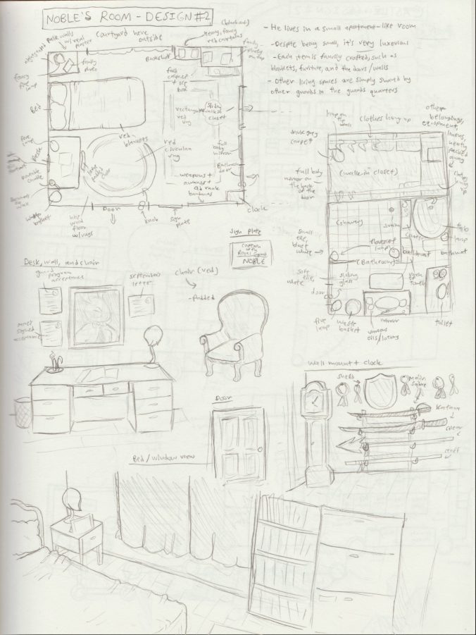 I finally designed Noble’s room in-depth. Before I only drew his room with a bed, desk and window… now it’ll look like a real room!