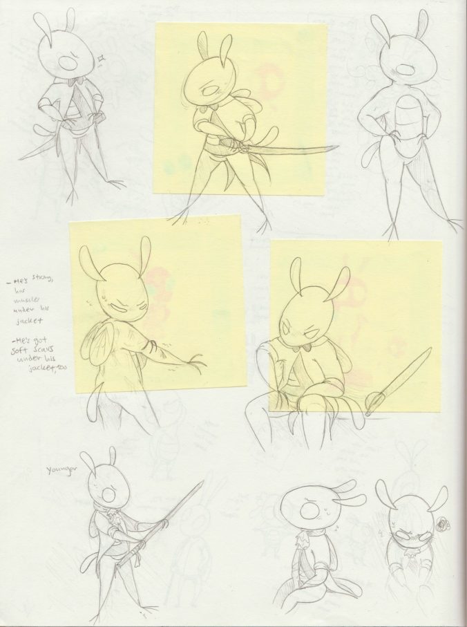 Sketches of Noble growing up in the Royal Guard.